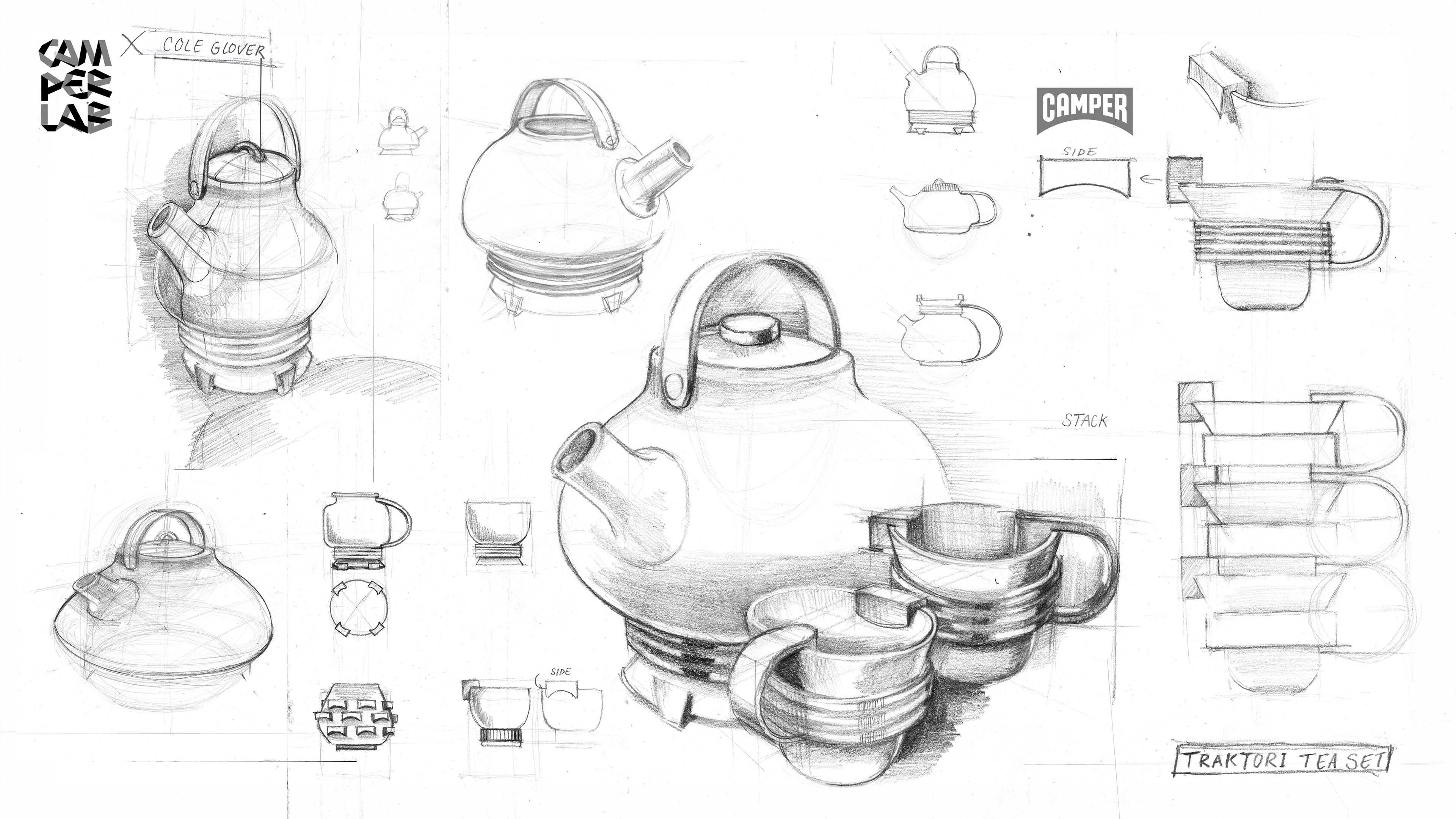 A concept tea set inspired by Campers iconic Traktori footwear line.