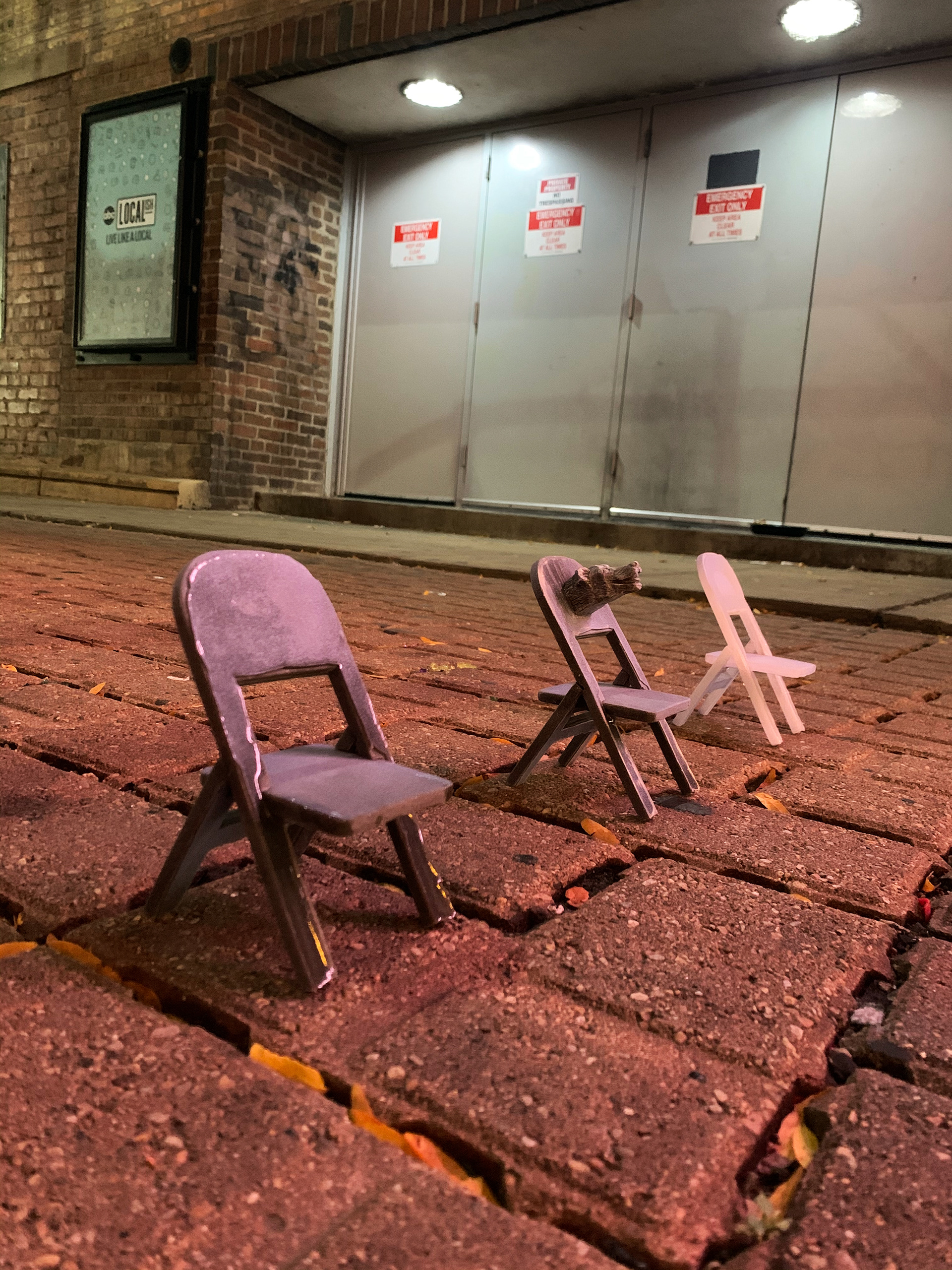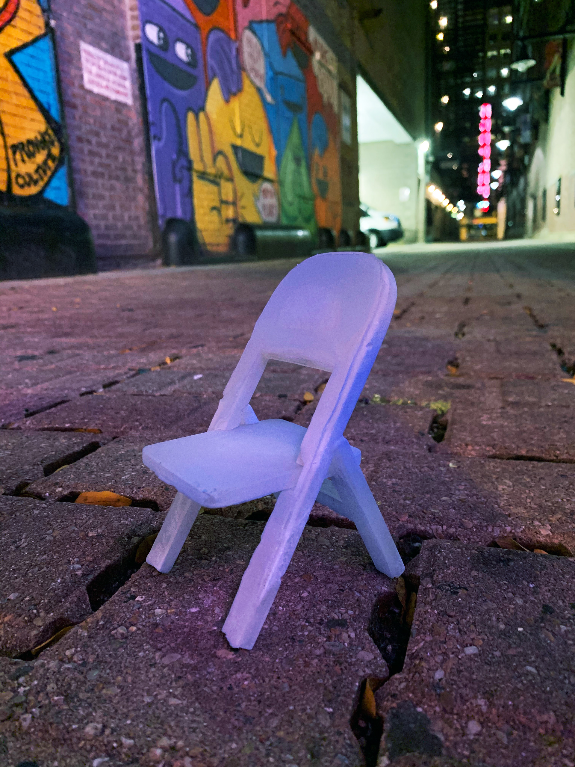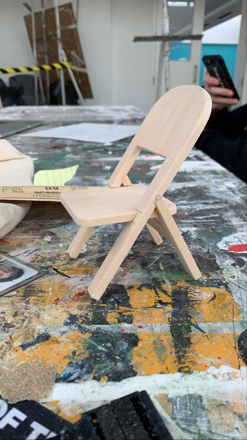 Miniature symbolic folding chairs; each chair was cast in three pieces, original was made